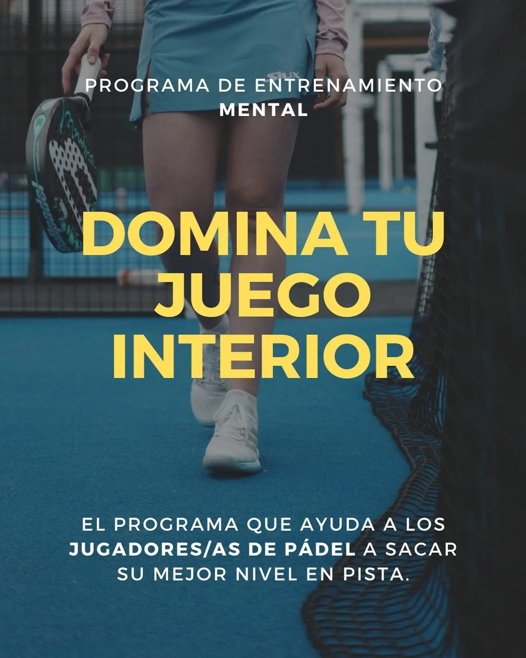 Te da herramientas para gestionar bloqueos, miedos, presión, comunicación en pista y cualquier situación que hoy te está frenando en tu mejor versión como jugador/a.